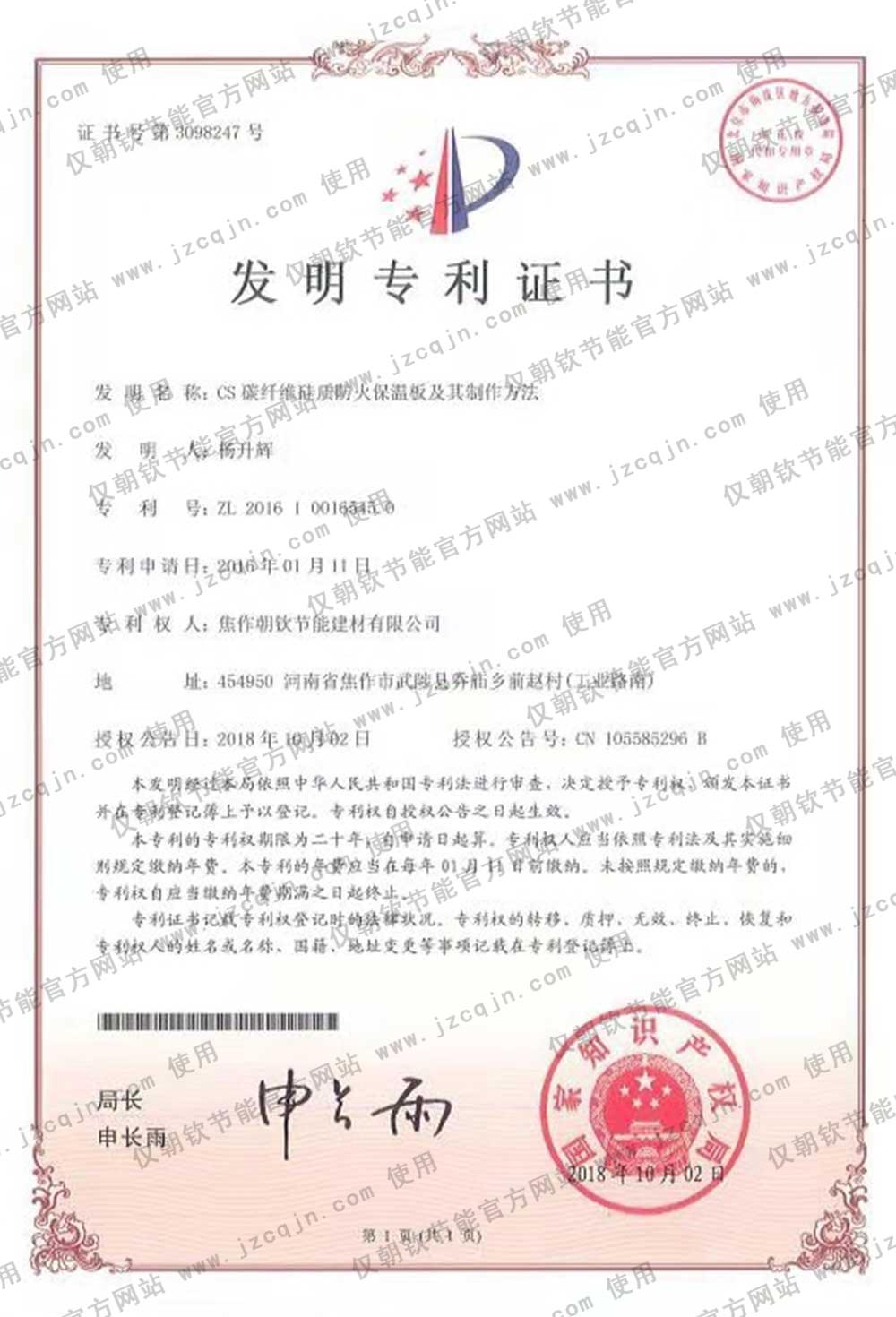 專(zhuān)利|CS碳纖維硅質(zhì)防火保溫板及其制作方法